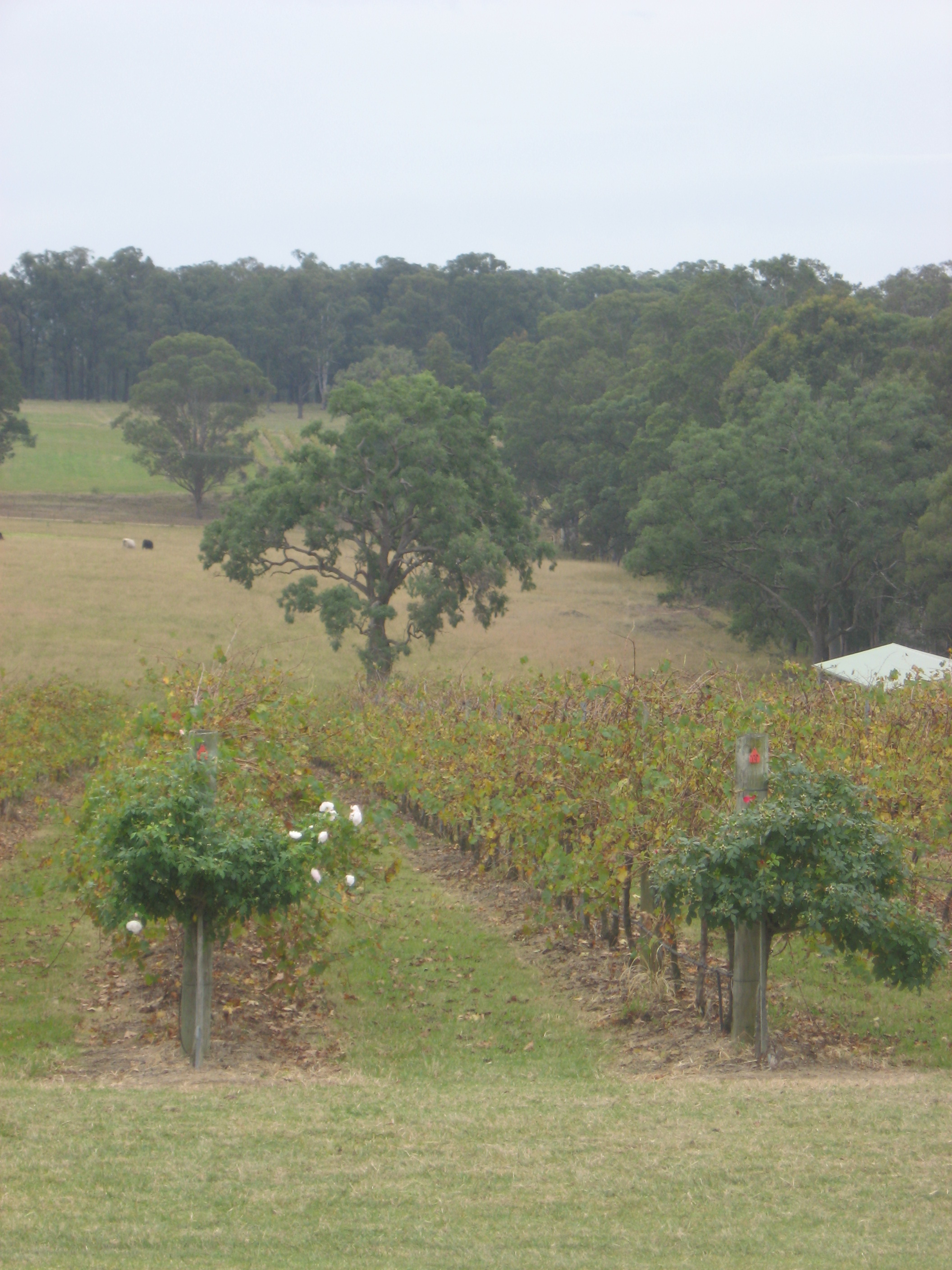 Oddly, I got several pictures of the winery where we didn’t taste and no pictures of the third winery on our tour: Ernest Hill. You’ll have to trust me that it wasn’t that impressive, though. The wines were tasty and we bought two bottles there (five, altogether), but it wasn’t much to look at and the rain started in earnest (!) just then. I asked about corks and learned a little more about why Australia’s so pro-screw-top (which is fine by me).